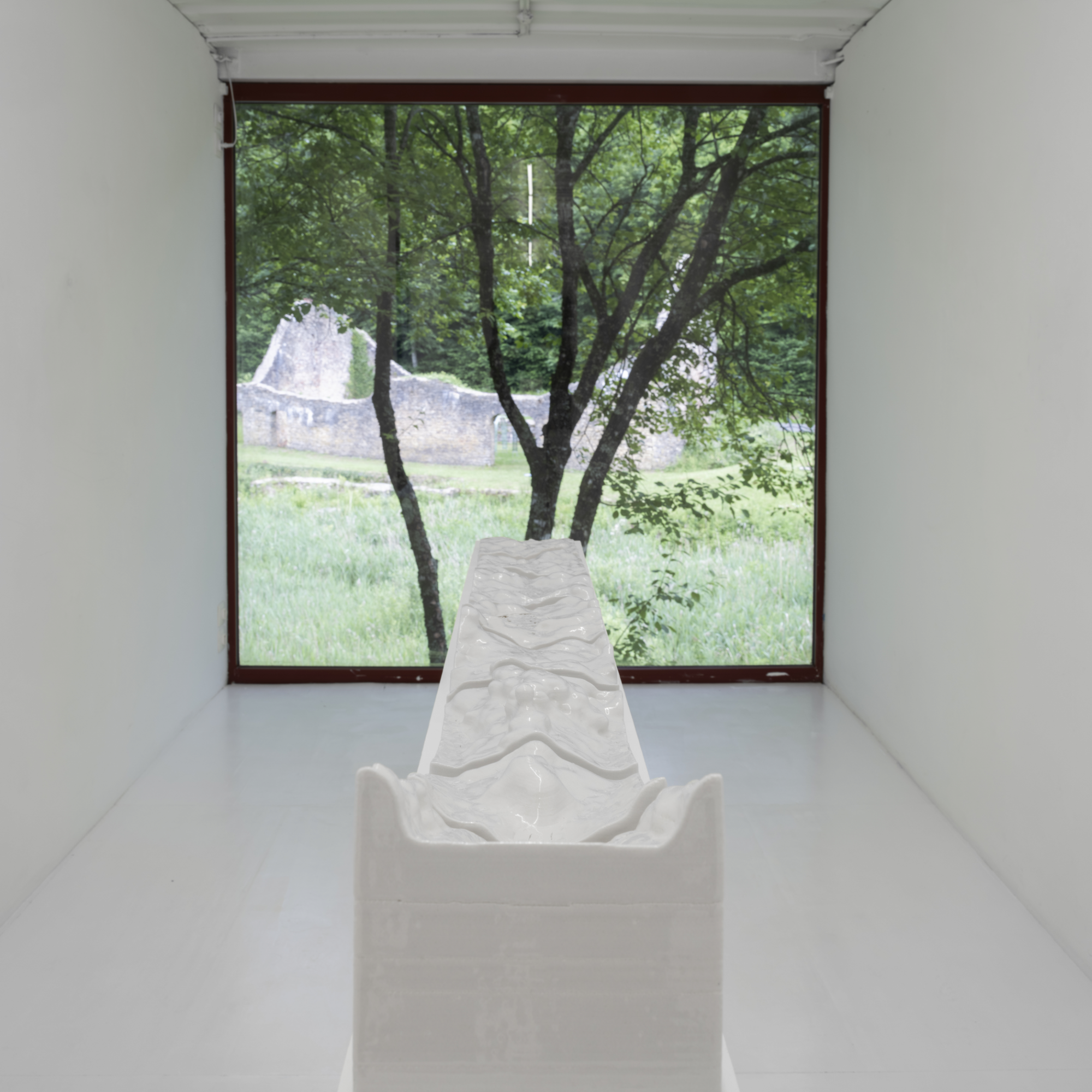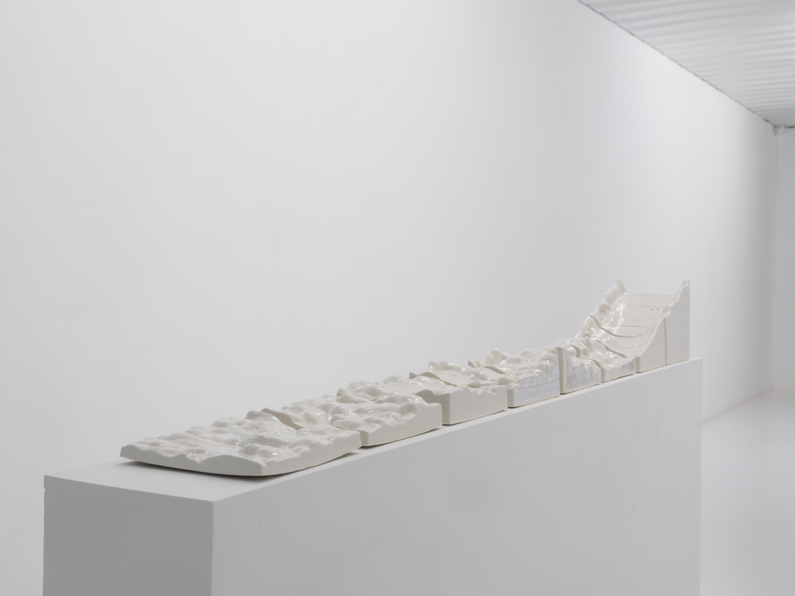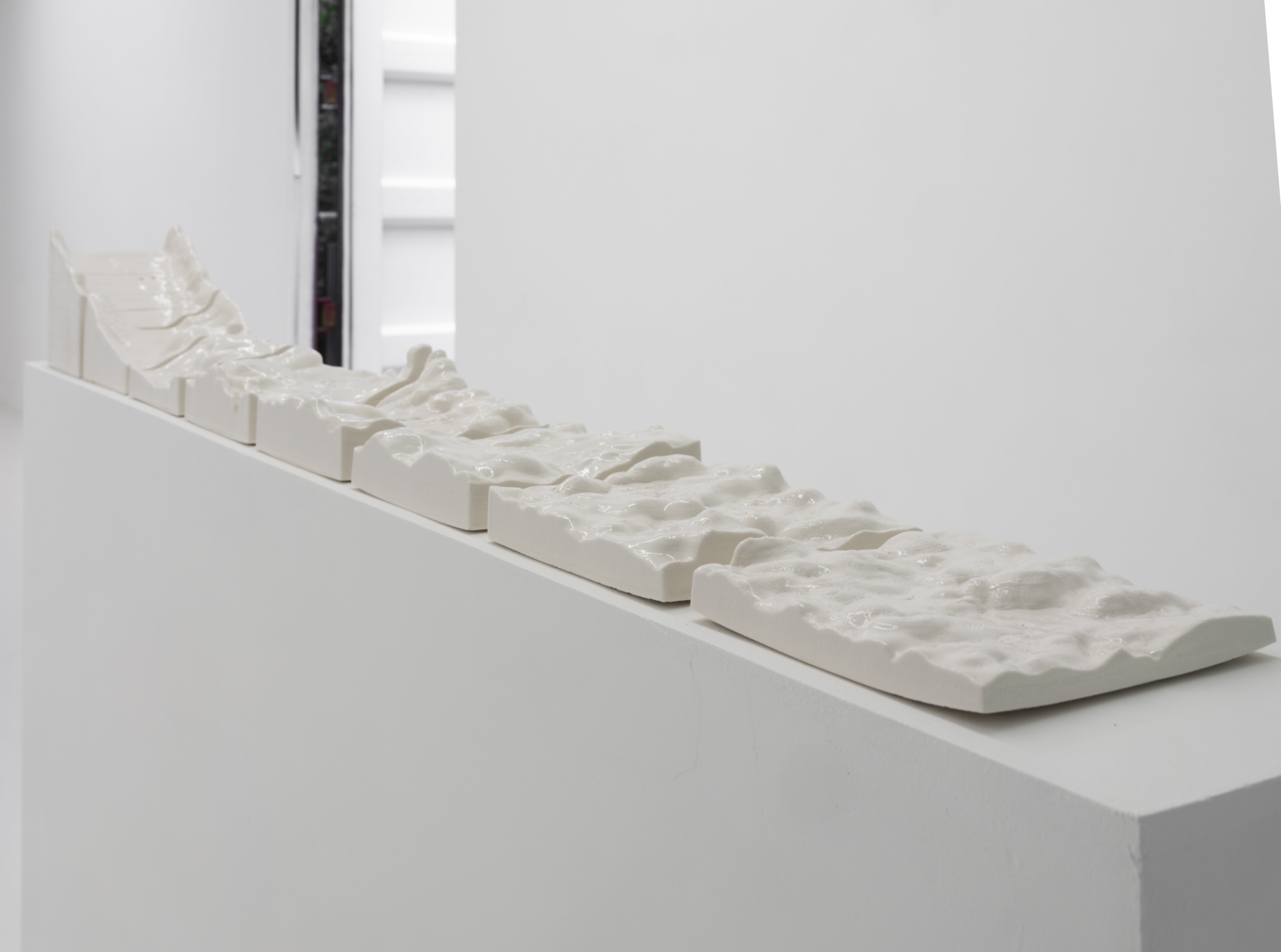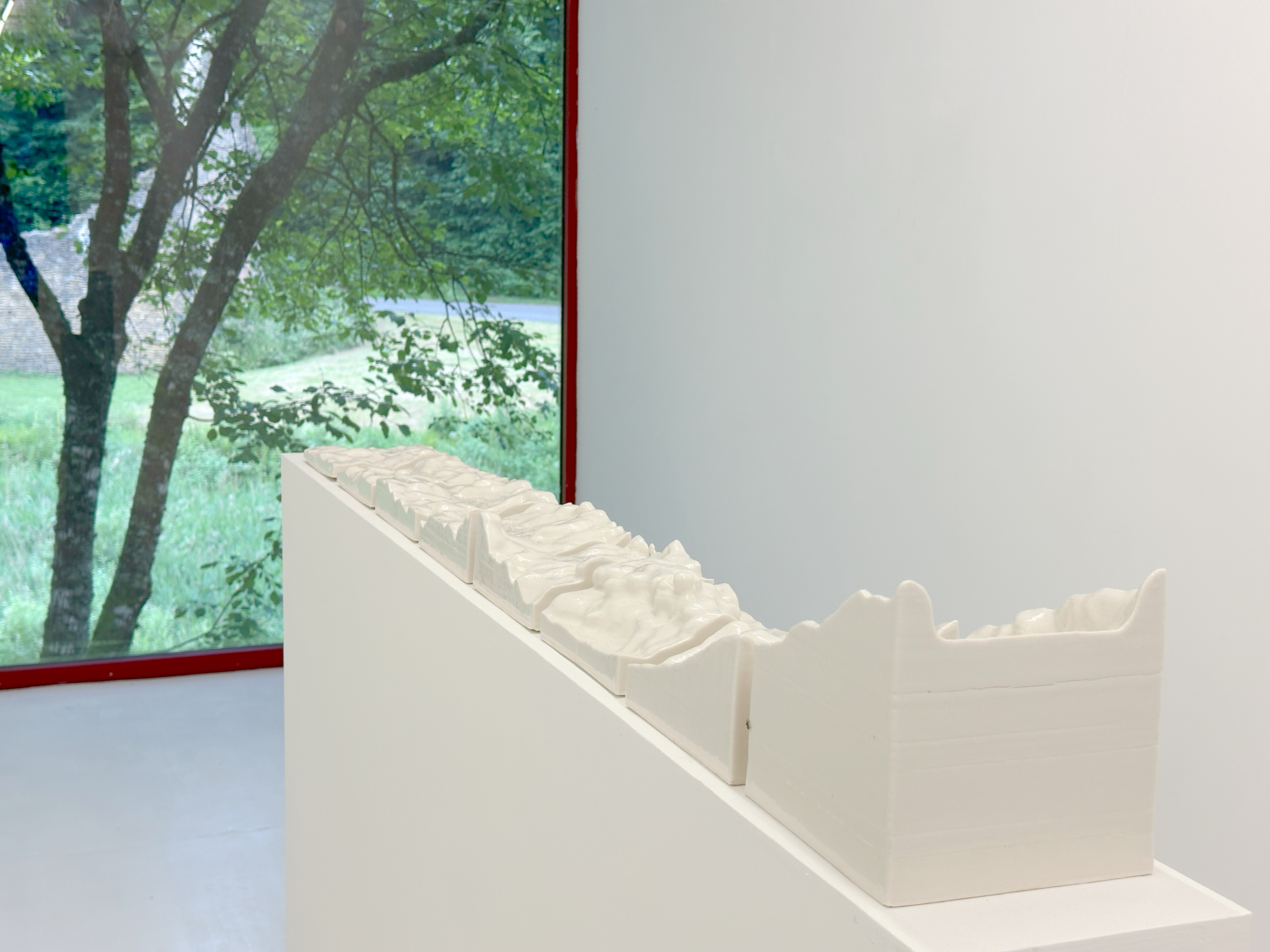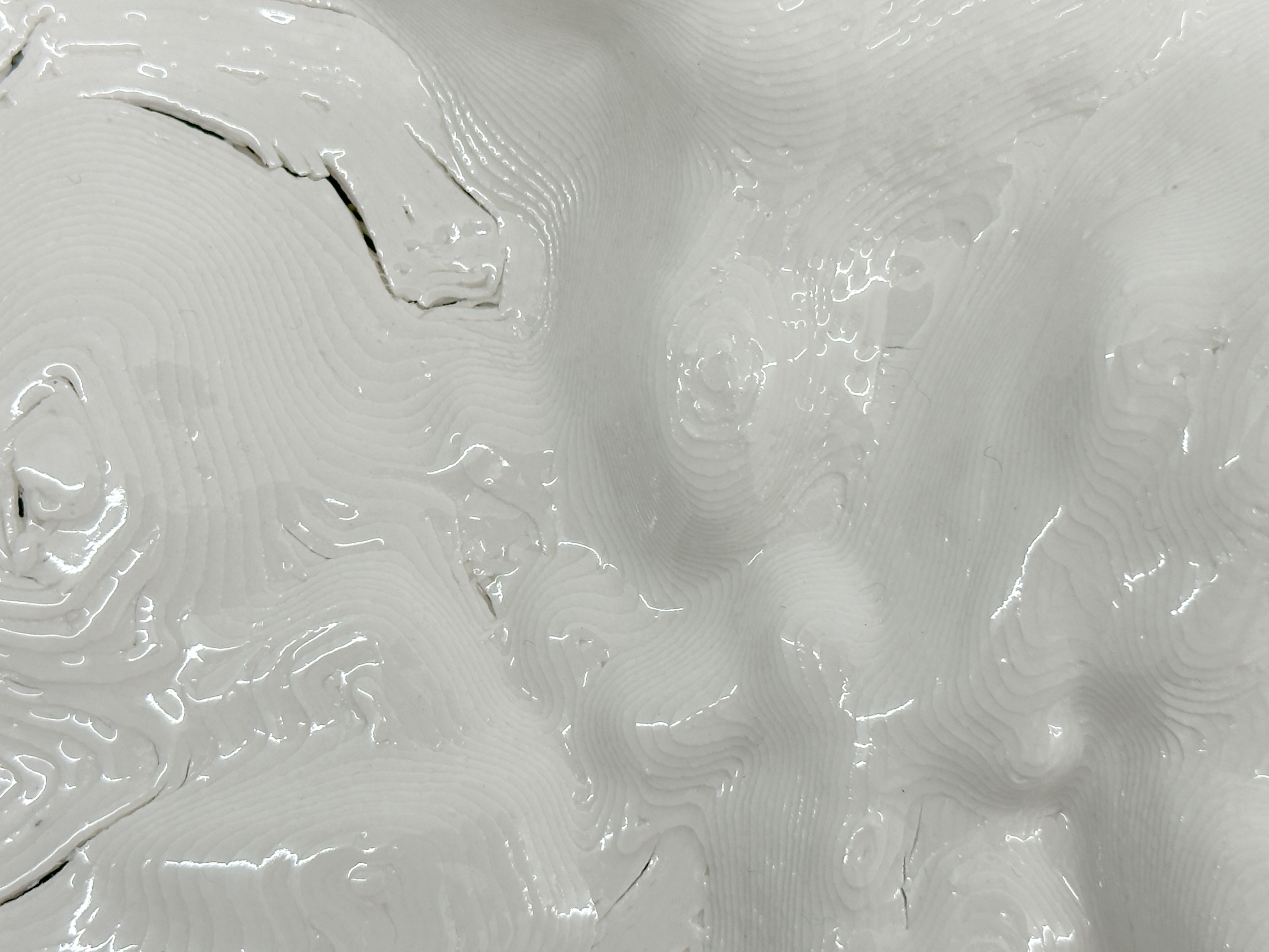 Topography of a Second explores the relationship between time and space through the movement of a river. A digital animation presents the continuous flow of water, while a 3D-printed clay sculpture captures a unique moment of the moving image, a suspended fragment translated into form. Topography of a Second questions the tension between the fluidity of time and the permanence of space.